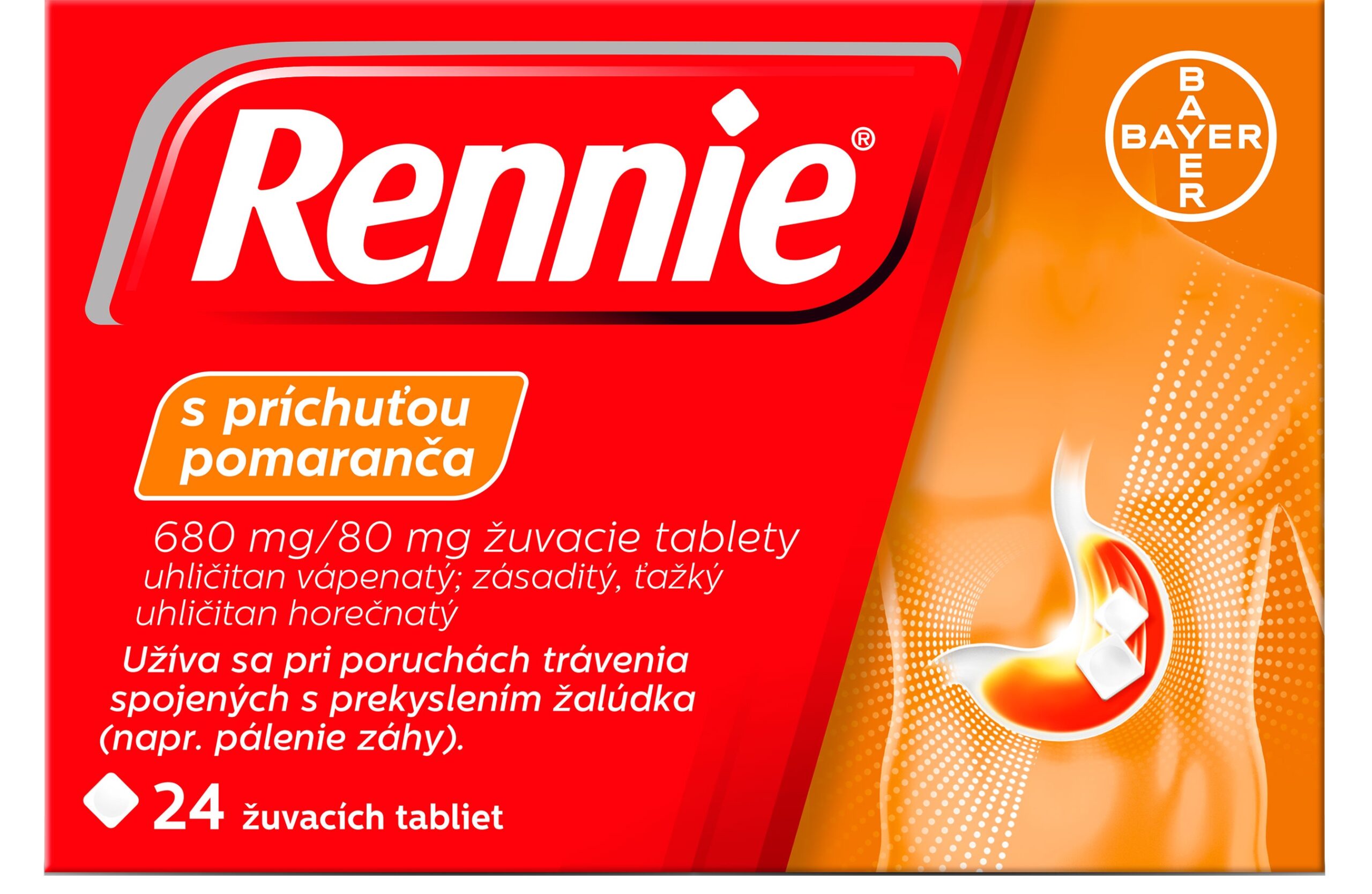 Rennie s príchuťou pomaranča 24 žuvacích tabliet