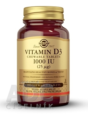 Solgar Vitamín D3 1000 IU žuvacie tbl, príchuť jahody a banánu 1×100 ks