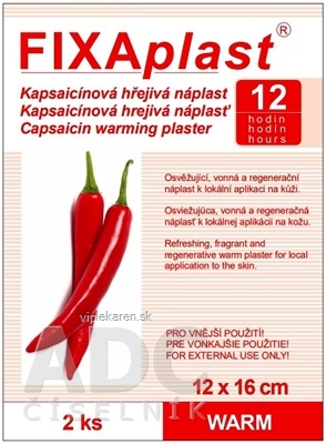 FIXAplast Kapsaicínová hrejivá náplasť WARM 12×16 cm, 1×2 ks