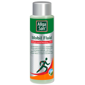 Allga San Mobil Fluid extra silný roztok s výrazným hrejivým účinkom obsahuje kombináciu originálnej kosodrevinovej silice, šalvie, rozmarínovej silice a oleja z čili papriky (obsahuje kapsaicín – extrakt z čili papričiek).