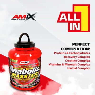 Anabolic Masster patrí medzi vysoko kvalitné a efektívne all-in-one zmesi pre maximálnu podporu vašich tréningových výsledkov. Má vysoký podiel bielkovín v podobe srvátkového koncentrátu, izolátu, vaječného proteínu a hydrolyzátu (aminokyseliny derivované z hovädzej bielkoviny). Podporuje tak rast a udržanie svalov, ale aj zdravie kostí. Okrem toho obsahuje sacharidy na podporu vyčerpaných zdrojov energie (glykogénu) a regeneráciu. Zabudnúť netreba ani na HMB, teda metabolit leucínu, ktorý je spojený so stimuláciou novotvorby svalových bielkovín (MPS – muscle protein synthesis). Navyše sa v zložení nachádza aj l-arginín, ktorý je prekurzorom oxidu dusnatého. Ten vplýva na celkové prekrvenie organizmu, vďaka čomu sa k svalom môže dostať viac kyslíka aj prospešných živín. To vo výsledku môže prispieť k efektívnejšiemu športovému výkonu či kvalitnejšej regenerácii.