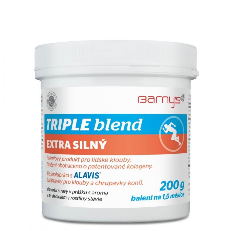 TRIPLE blend extra silný s arómou a so sladidlom – obsahuje kombináciu chondroprotektívnych látok – glukózamín a chondroitín sulfátu, látku MSM a značkové rybie kolagény.