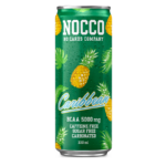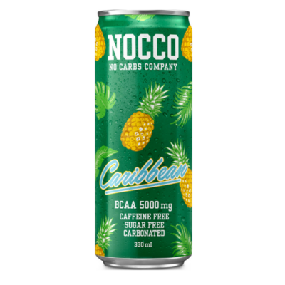 BCAA + 330 ml – NOCCO je funkčný perlivý bezkofeínový RTD nápoj, ktorý obsahuje 5 g BCAA. V zložení však nájdete tiež vitamíny B3, B6 a B12, ktoré pomáhajú znižovať únavu a vyčerpanie. Jedna plechovka nápoja má len 20 kcal a vďaka praktickému baleniu si ju môžete vziať všade so sebou.