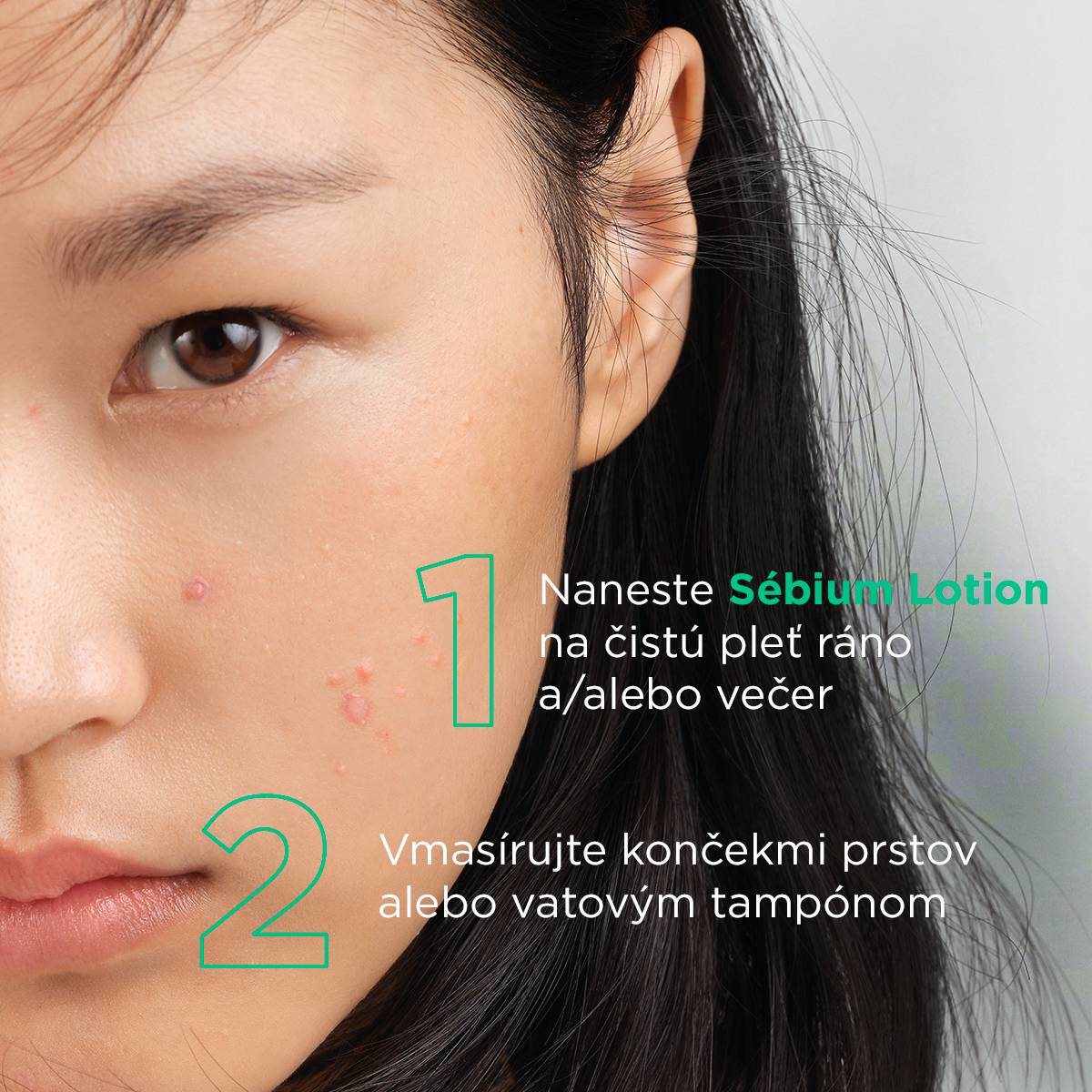 Naneste na tvár ráno a/alebo večer po vyčistení pleti najlepšie produktami Sébium. Vmasírujte prstami či vatovým tampónom. Potom aplikujte ďalšie produkty.