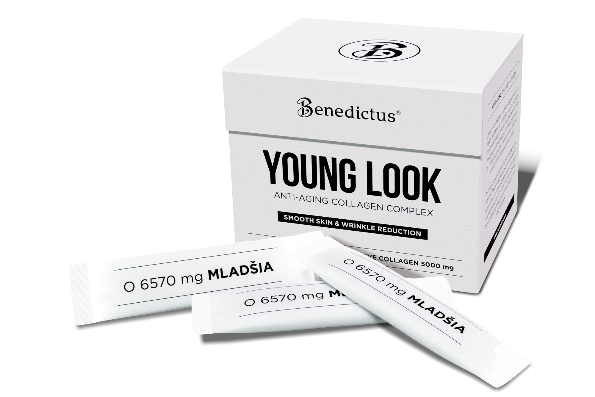 YOUNG LOOK prináša zlepšenie hydratácie a elasticity pokožky, redukciu vrások, zlepšenie kvality vlasov, nechtov, ochranu pred následkami UV žiarenia, redukciu celulitídy, posilnenie svalovej hmoty a zmiernenie až ústup bolestí opotrebovaných kĺbov, šliach i väzov.