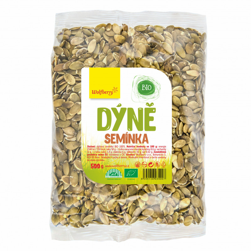 BIO Tekvicové semienka sú chutnou pochúťkou večer k filmu alebo ako prísada do vašich ranných vločiek. Sú výnimočným zdrojom horčíka, vápnika, draslíka, železa a vlákniny.