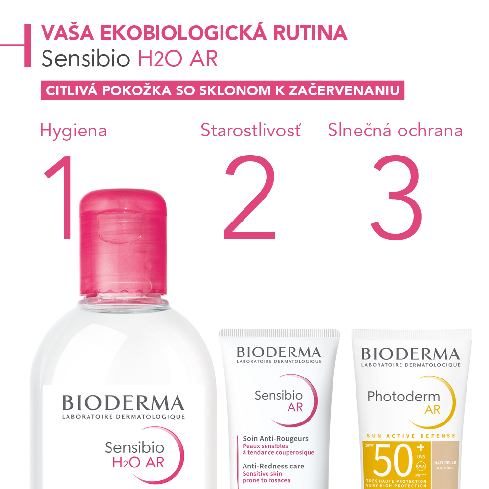 Trpí vaša pleť začervenaním alebo rosaceou? BIODERMA Sensibio AR čistiaca micelárna voda obsahuje komplex aktívnych zložiek a jedinečný patent ROSACTIV™, ktorý minimalizuje začervenanie a rozšírené žilky a zabraňuje ich návratu. Navyše upokojuje pokožku a odstraňuje štípanie, pálenie, teplo a pnutie. Sensibio H2O AR spoľahlivo odstraňuje aj vodeodolný make-up, ale zároveň upokojuje a osviežuje pleť vďaka výťažku z uhorky a aloe vera.
