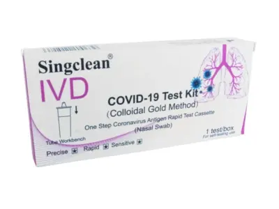 Nosový samodiagnostický test. Súprava na rýchle antigénové testovanie SARS-CoV-2 a chrípky A a chrípky B.