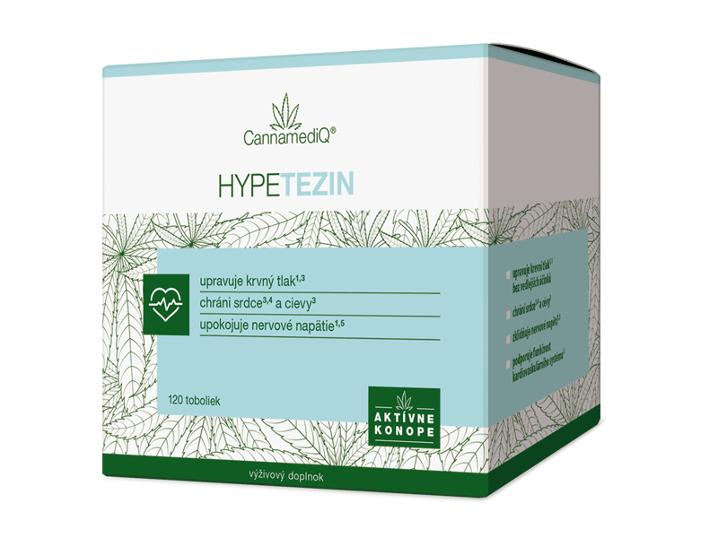 CannamediQ® Hypetezin je jedinečný prípravok obsahujúci konope a hloh pre efektívnu moduláciu krvného tlaku. Prírodné zloženie na báze konopí a rastlinných extraktov zabezpečuje vysokú účinnosť a maximálnu bezpečnosť užívania bez vedľajších účinkov.