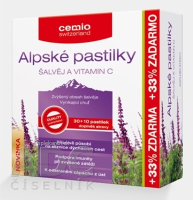 Cemio Alpské pastilky ŠALVIA A VITAMÍN C pastilky 30+10 (33% zadarmo) (40 ks)