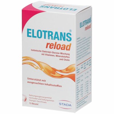 Elotrans® reload je zmes na prípravu izotonického nápoja s elektrolytmi a glukózou, s vitamínmi, minerálmi a cholínom. Ideálna na podporu, vitalizáciu a rehydratáciu organizmu počas aktívnych dní a dlhých nocí. Výživový doplnok s obsahom cukru a sladidiel. Elotrans®. Pre najlepšie spomienky.