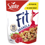 Fit Granola je chrumkavá zmes vločiek doplnená o kúsky sušeného ovocia alebo orechov, ktorú si obľúbite pre jej lahodnú chuť aj skvelé zloženie. Neobsahuje pridaný cukor ani glukózový alebo fruktózový sirup. Vyniká vysokým obsahom vlákniny, vďaka čomu vás zasýti na dlhšiu dobu.