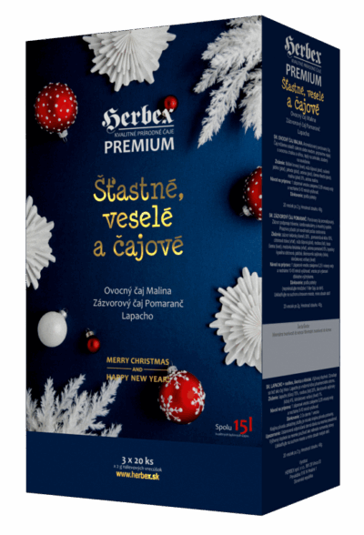 Darčekové vianočné balenie bylinných čajov pre pitný režim po celý deň.