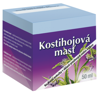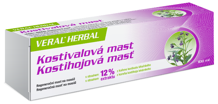 VERAL HERBAL Kostihojová masť – kozmetický prípravok s obsahom extraktu z koreňa kostihoja lekárskeho vhodný na masáž stuhnutého pohybového aparátu. Vhodný tiež po športových výkonoch a veľkej námahe. Hlavnou zložkou kostihoja je alantoín, ktorý podporuje regeneráciu a odstraňuje svalovú únavu. Pri masáži pôsobí regeneračne na unavené svaly a kĺby.