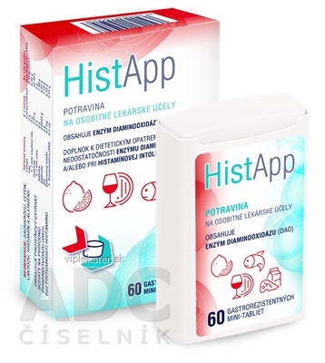 Gastrorezistentné mini – tablety v praktickej nádobke s dávkovačom obsahujú enzým diaminooxidázu (DAO). Doplnok k dietetickým opatreniam pri nedostatočnosti enzýmu diamonooxidáza (DAO) a/alebo pri histamínovej intolerancii.