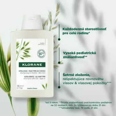 Šampón s BIO ovsom umýva, zjemňuje a chráni pokožku hlavy a vlasy celej rodiny vrátane detí vo veku od 3 rokov. Jeho biologicky rozložiteľné zloženie s vysokou znášanlivosťou obsahuje 87 % zložiek prírodného pôvodu. Dermatologicky a pediatricky testovaný šampón rešpektuje rovnováhu krehkej pokožky celej rodiny, vrátane detí vo veku od 3 rokov. Vďaka zjemňujúcim a ochranným vlastnostiam výťažku z ovsa organicky pestovaného na juhozápade Francúzska poskytuje vlasom skutočný kúpeľ hebkosti a uľahčuje rozčesávanie. Vlasy sú dokonale čisté, pružné a chránené.