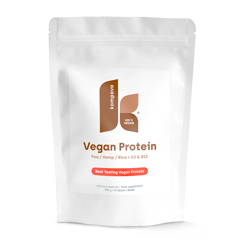 Vegan Protein je 60 % proteínový nápoj zložený z 3 druhov rastlinných proteínov – hrachový, konopný a ryžový. Obohatený je o rastlinné BCAA, vitamíny skupiny B a vitamín D3. Rastlinné proteíny sú obsahovo v takom pomere, aby zabezpečili všetky potrebné esenciálne aminokyseliny pre organizmus. Zvýšený obsah vitamínu B12 a D3 dopĺňa nedostatkové zložky rastlinnej potravy. Vegan Protein zabezpečuje kvalitný proces regenerácie po akomkoľvek športovom výkone a udržiava organizmus v dobrom fyzickom stave a kondícii. Vhodný je ako alternatíva kvalitného proteínu v prípade laktózovej intolerancie, bezlepkovej diéte i pre diabetikov.