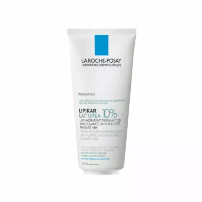 LRP Lipikar 10% UREA telové mlieko pre velmi suchú, drsnú a šupinatú pokožku. INDIKÁCIA: Veľmi suchá, drsná, šupinatá koža. Vhodné pre deti, dospelých i seniorov. Vhodné aj pre osoby so sklonom ku keratóze pilaris, senilnej xeróze a psoriáze. KLINICKY PREUKÁZANÁ ÚČINNOSŤ: Okamžite pomáha redukovať všetky príznaky suchej pokožky a ich opakovaný výskyt: drsnosť, olupovanie, pnutie a pocity svrbenia. Pôsobí proti vysušovaniu a podráždeniu po dobu až 48 h. Viditeľne zlepšuje vzhľad suchej pokožky, prispieva k odstráneniu šupinatých a drsných zón. Intenzívne upokojuje a zmierňuje pocity podráždenia.