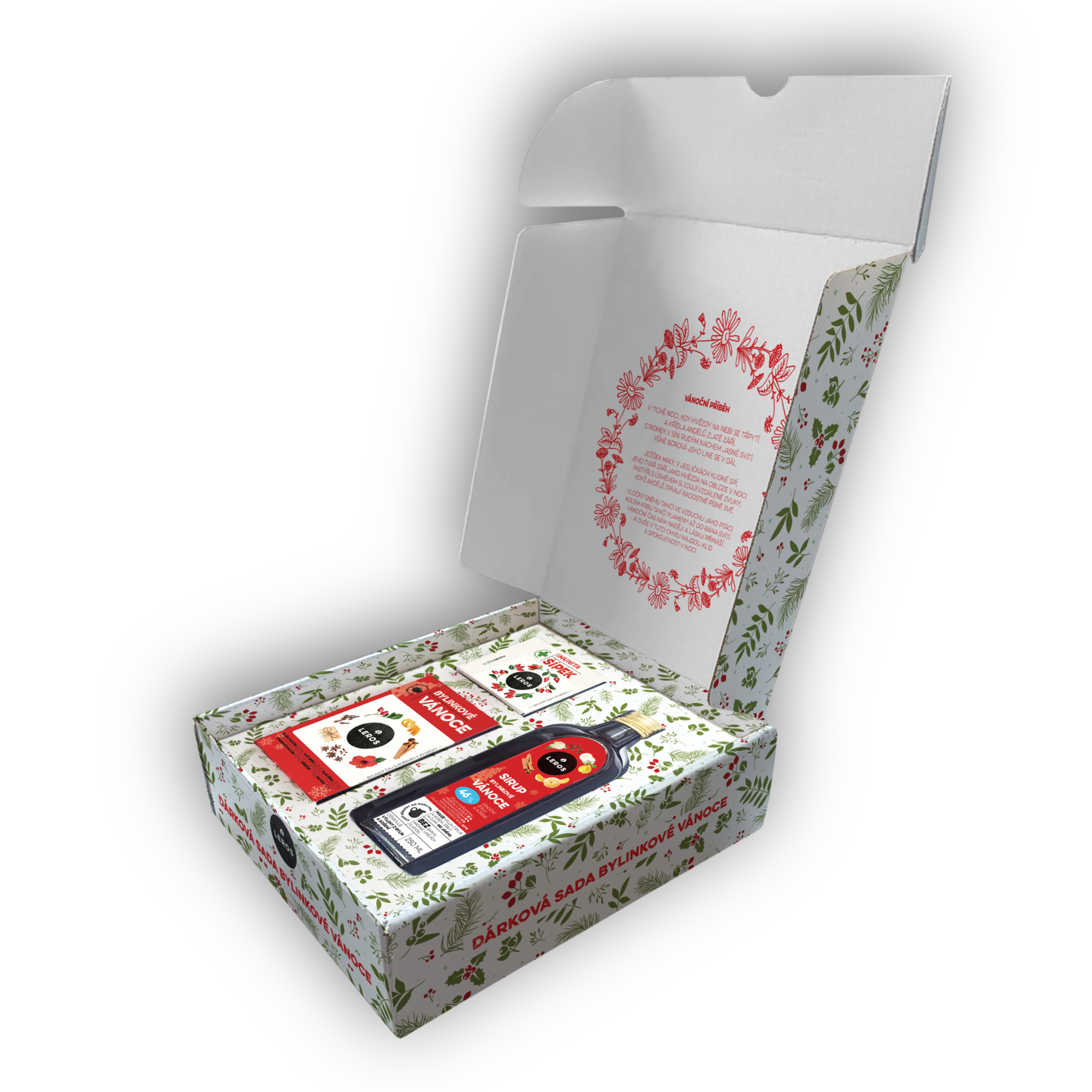 čaj Bylinkové Vianoce 20×2 g + čaj Šípka Imunita 10×2,5 g + sirup Bylinkové Vianoce 250 ml