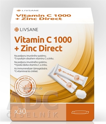LIVSANE Vitamín C 1000 + Zinok Direct vrecúška (á 2,2 g) 1×30 ks