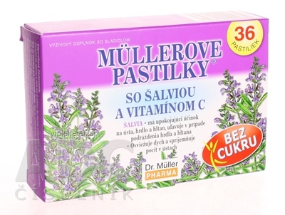 MÜLLEROVE PASTILKY SO ŠALVIOU A VIT. C Bez cukru 1×36 ks