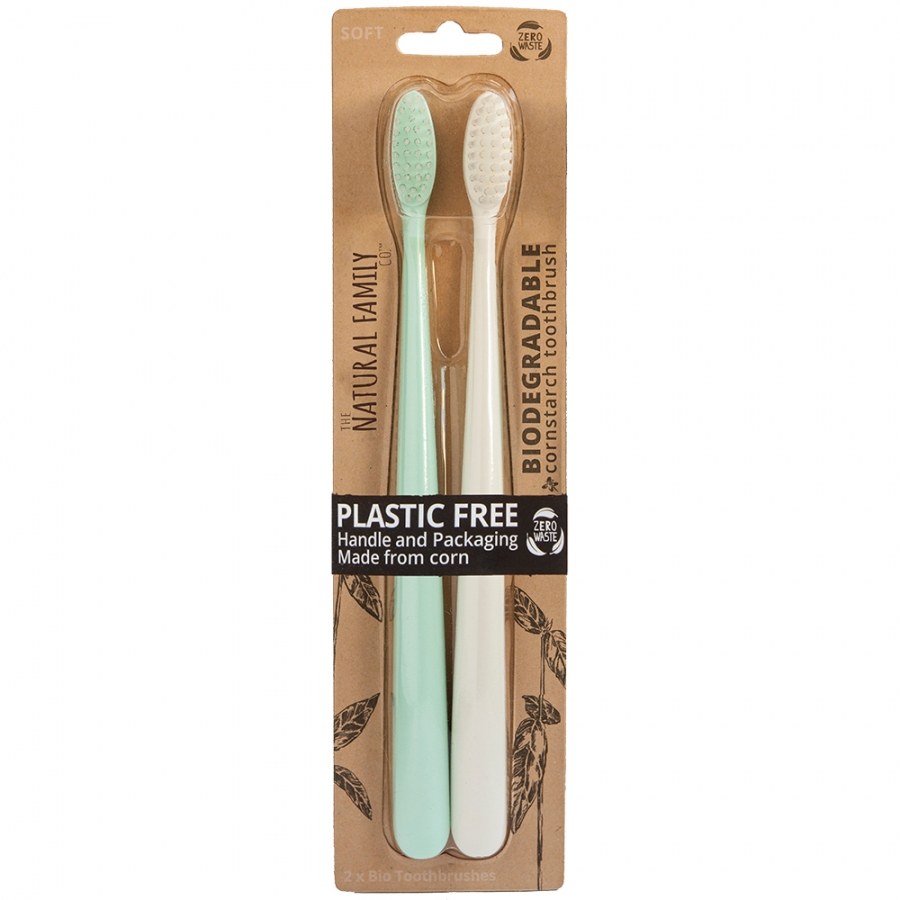 Biologicky rozložiteľná zubná kefka vyrobená zo 100% NON-GMO kukuričného škrobu.