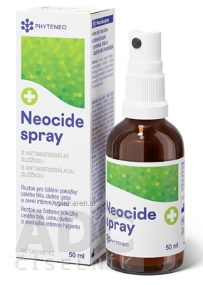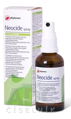 Neocide sprej s obsahom modernej antimikrobiálnej zložky Octenidine sa používa na čistenie pokožky celého tela. Octenidine je bezpečná zložka, preto je prípravok vhodný aj pre malé deti, tehotné a dojčiace ženy. Vykazuje rýchly nástup účinku, neobsahuje alkohol a je veľmi dobre znášaný. Môže sa používať aj dlhodobo.