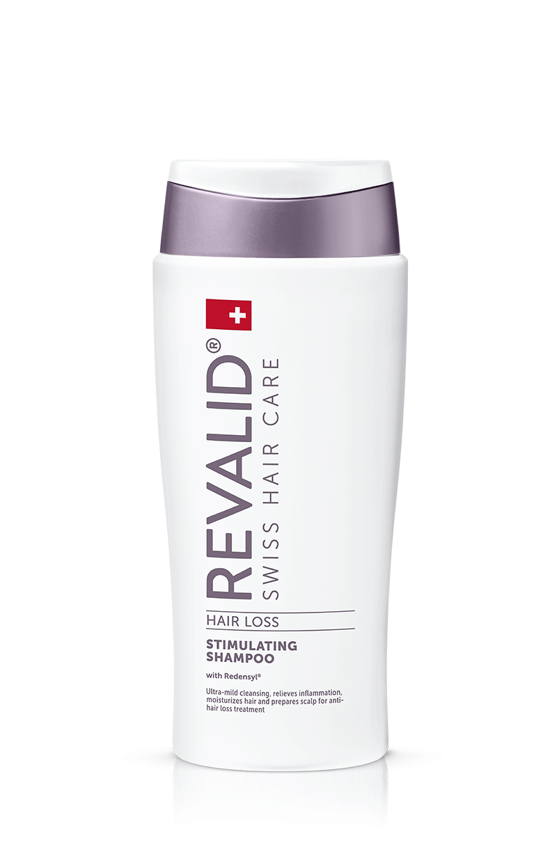 Stimulujúci šampón s patentovanou aktívnou zložkou Redensyl® optimálne pripraví pokožku hlavy na aplikáciu prípravku proti vypadávaniu vlasov Revalid Regrowth Serum.“