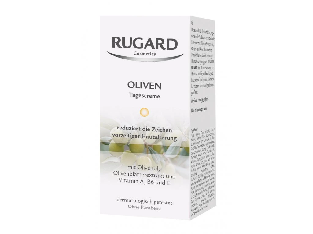 Hodnotný extrakt z olivových listov, olivový a arganový olej podporujú prirodzenú ochrannú funkciu pleti a vyrovnávajú stratu hydratácie pleti. RUGARD OLIVOVÝ denný krém zanecháva suchú a citlivú pleť sviežu, zamatovo hebkú a hladkú.