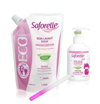 SAFORELLE jemný gél na intímnu hygienu bol špeciálne vyvinutý na intímnu hygienu citlivej a podráždenej pokožky. Tento prípravok 2 v 1 obsahuje prírodný výťažok z Lopúcha väčšieho, vďaka ktorému zmierňuje podráždenie a nepríjemné pocity svrbenia a pálenia v intímnej oblasti. Vďaka jemnému zloženiu, ktoré neobsahuje mydlo je prípravok obzvlášť vhodný na každodenné použitie, pretože rešpektuje prirodzenú rovnováhu pokožky. Testované pod lekárskym dohľadom.