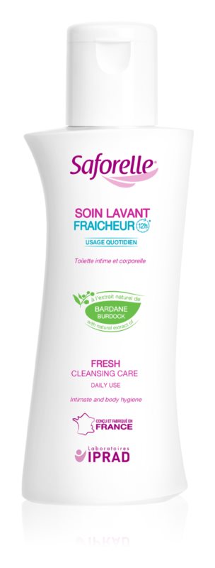 SAFORELLE jemný gél na intímnu hygienu bol špeciálne vyvinutý na intímnu hygienu citlivej a podráždenej pokožky. Tento prípravok 2 v 1 obsahuje prírodný výťažok z Lopúcha väčšieho, vďaka ktorému zmierňuje podráždenie a nepríjemné pocity svrbenia a pálenia v intímnej oblasti. Vďaka jemnému zloženiu, ktoré neobsahuje mydlo je prípravok obzvlášť vhodný na každodenné použitie, pretože rešpektuje prirodzenú rovnováhu pokožky. Testované pod lekárskym dohľadom.