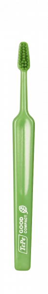 Environmentálne šetrná zubná kefka TePe GOOD Compact určená pre deti od 3 let vyrobená z obnoviteľných zdrojov surovín. Rukoväť je vyrobená z bioplastu pochádzajúceho z cukrovej trstiny a jemné vlákna sú z ricínového oleja. Rovnaká kvalita, väčšia šetrnosť k prírode.