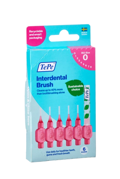 Medzizubné kefky TePe Original veľkosť 0 (t.j. 0,4 mm – ružová rukoväť), na dentálnu starostlivosť,