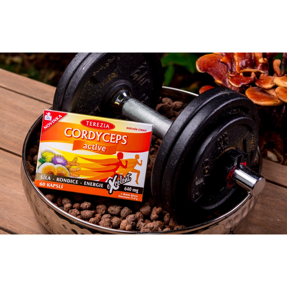 CORDYCEPS ACTIVE je 100% prírodný produkt, ktorý obsahuje významnú hubu žezlovku čínsku (Cordyceps sinensis), ktorá patrí k hlavným pilierom v rámci tradičnej čínskej medicíny. Je určený pre všetky aktívne osoby, najmä športovcov. O húsenicu čínsku stúpol záujem v roku 1993, kedy skupina čínskych športovcov, ktorí ju užívali ako povolený doping, prekonala 9 svetových rekordov. Medzi ďalšie zložky produktu CORYCEPS ACTIVE patrí rozchodnica ružová, ktorá dodáva telu silu a vytrvalosť pri športových výkonoch. Bylina leuzea saflorová zvyšuje adaptabilitu organizmu v extrémnych a napätých situáciách, stimuluje duševné funkcie a povzbudzuje telo. Ďalej obsahuje vzácnu hubu reishi (ganoderma), ktorá prispieva k prirodzenej obranyschopnosti organizmu.