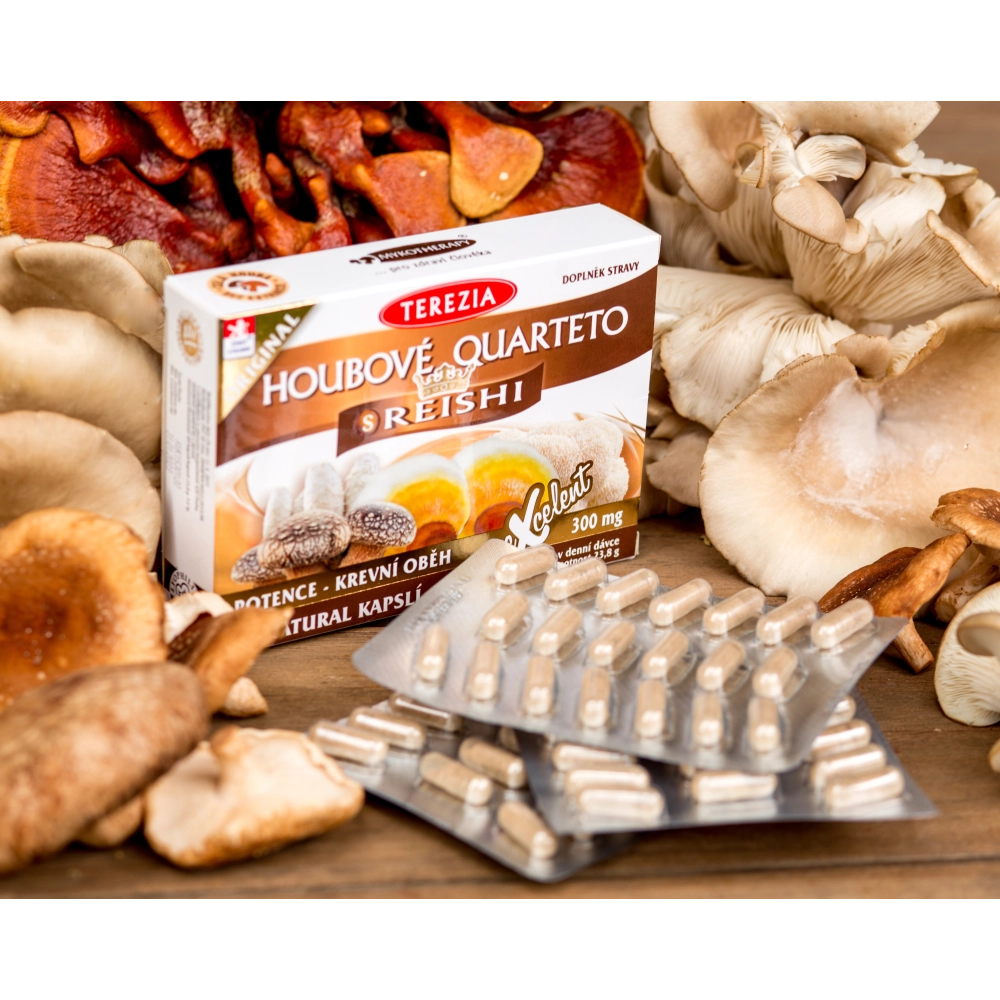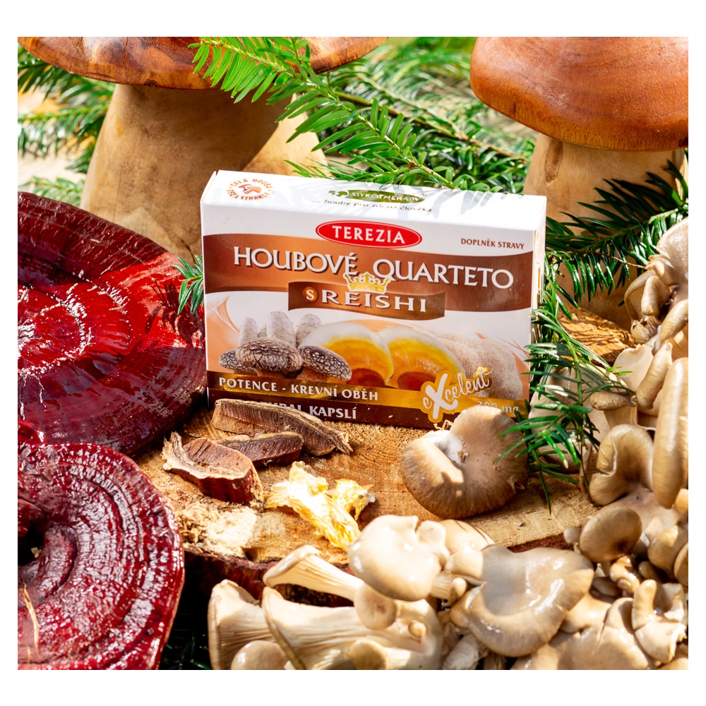 HUBOVÉ QUARTETO je unikátny produkt s obsahom štyroch prospešných húb doplnený o byliny rozchodnicu a leuzeu. Je určený pre dospelých a seniorov, ktorí si chcú podporiť súčasne fyzickú aj psychickú kondíciu. Obsiahnutá vzácna huba reishi (ganoderma) podporuje našu imunitu a obehový systém, bylina rozchodnica ružová pomáha telu vysporiadať sa s emočným vypätím a fyzickou námahou a leuzea saflorová zvyšuje adaptabilitu organizmu v extrémnych situáciách, stimuluje duševné funkcie a povzbudzuje telo.
