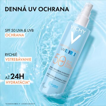 Tento fluid na tvár a telo, obohatený o novú prelomovú technológiu UV Aqua, nielenže chráni pokožku pred UVA, UVB a dlhovlnným UVA žiarením, ale zároveň v nej uzamyká hydratáciu až na 24 hodín. Zloženie je obohatené o beta-karoténom, ktorý pomáha k zdravému a žiarivému opáleniu a zároveň poskytuje vysokú ochranu pred slnkom. Rýchlo sa vstrebáva, je odolný voči vode, hypoalergénny a neviditeľný na všetkých fototypoch. Je hydratačný, svieži a neviditeľný, presne ako voda. Dermatologicky a oftalmologicky testované.