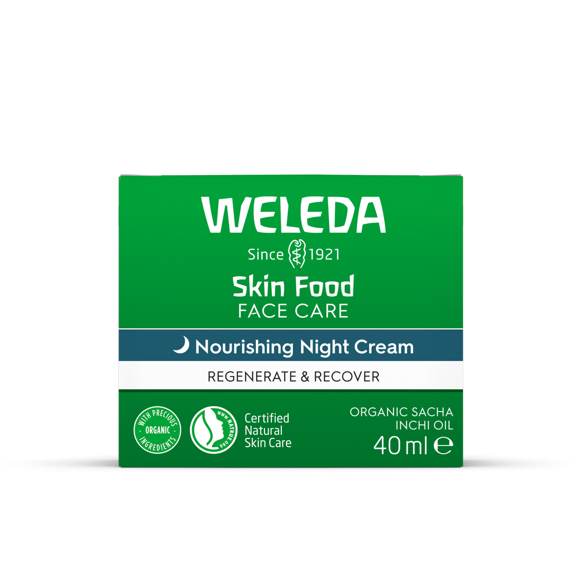 SKIN FOOD výživujúci nočný pleťový krém v sebe spája rastlinné výťažky z fialky, organického nechtíka, harmančeka a pupočníka ázijského. To všetko je doplnené o rastlinný skvalan a organický olej sancha inchi.